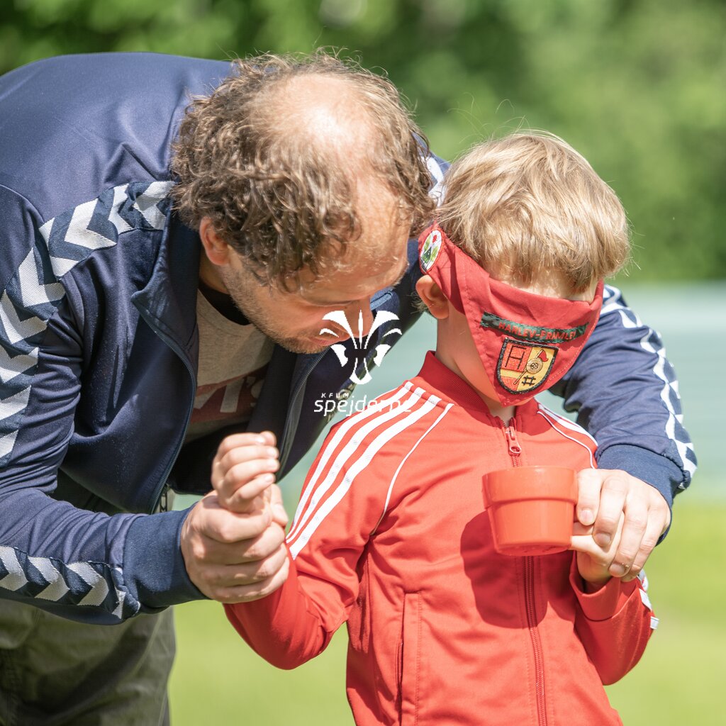 Familiespejderne i Harlev-Framlev gruppe havde spejdermøde en dejlig sommerdag i juni 2021, med aktiviteter som bål og vandballoner.